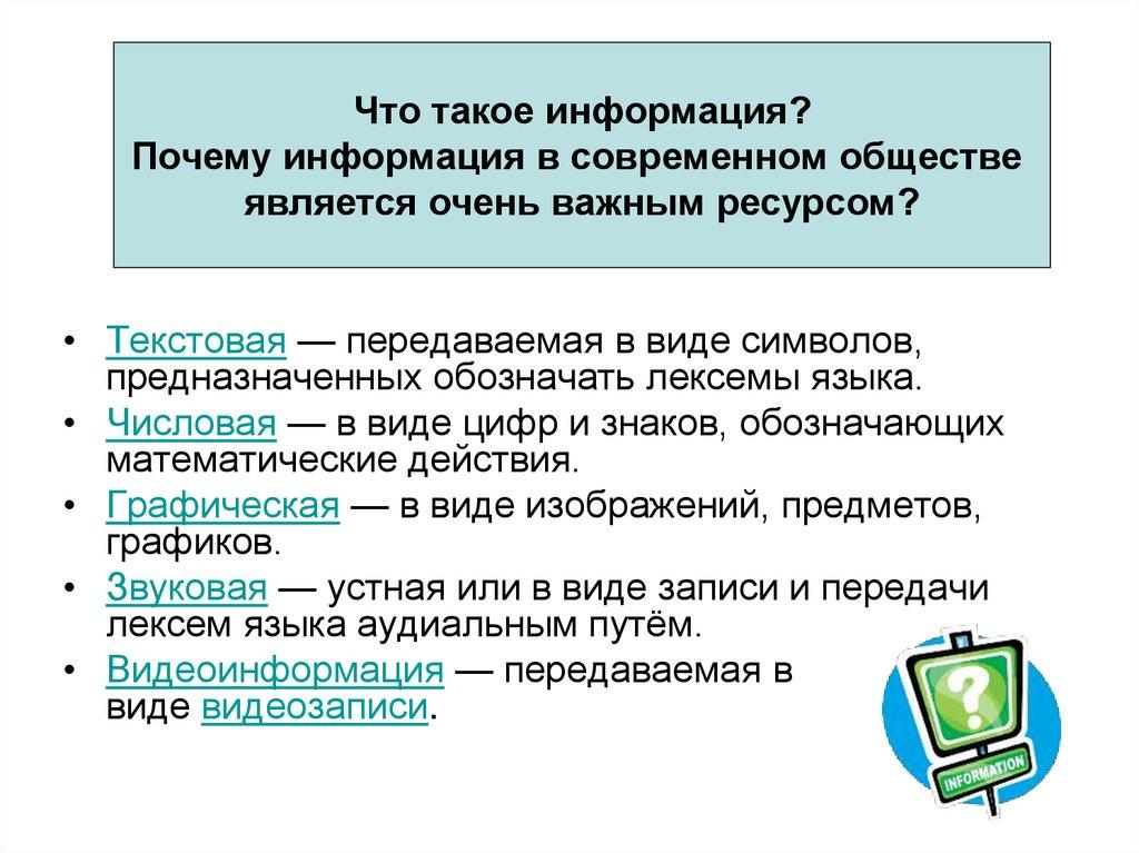 Что такое информация?Почему информация в современном обществе