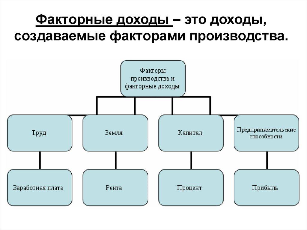Факторные доходы – это доходы,создаваемые факторами производства.