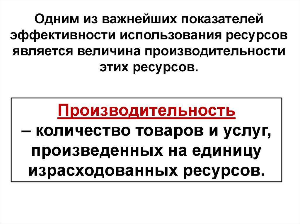 Одним из важнейших показателейэффективности использования ресурсов