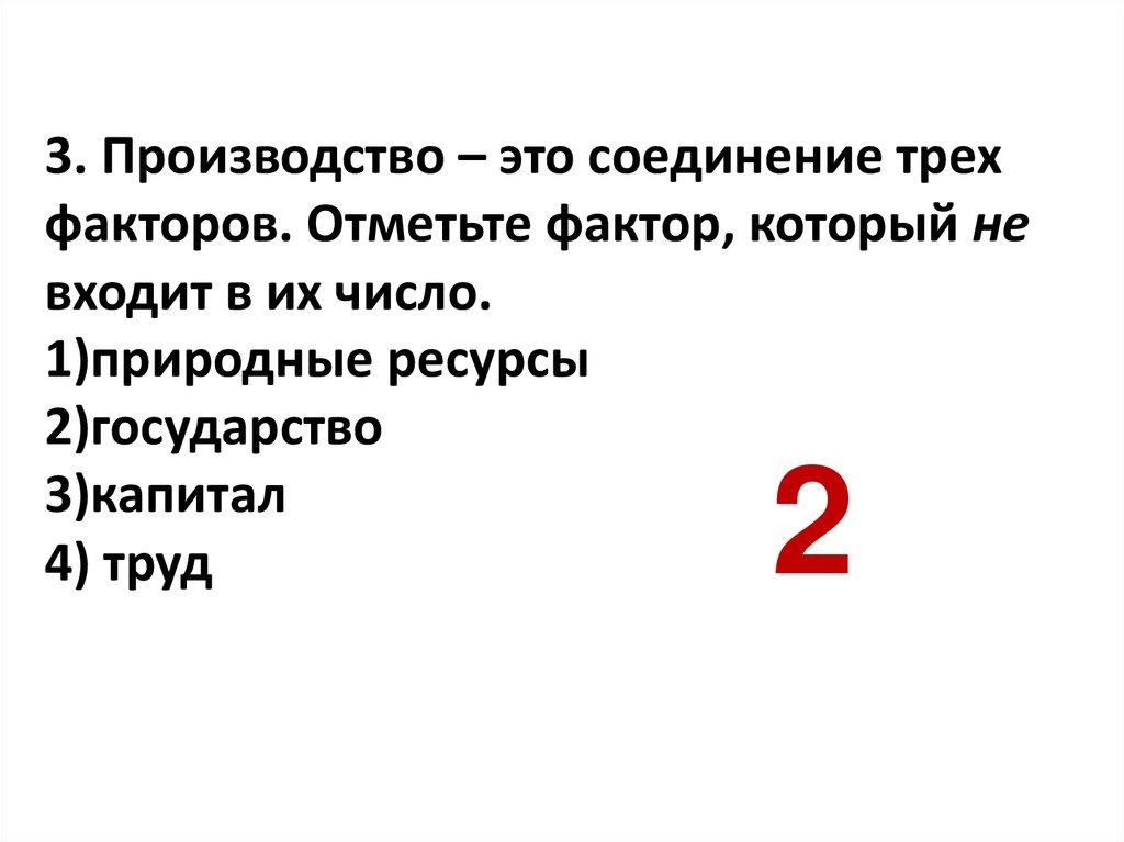 3. Производство – это соединение трехфакторов. Отметьте фактор, который не