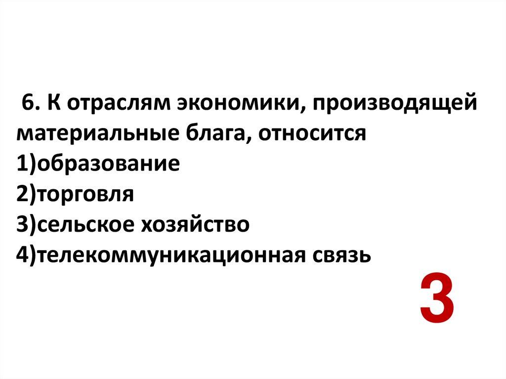 6. К отраслям экономики, производящейматериальные блага, относится