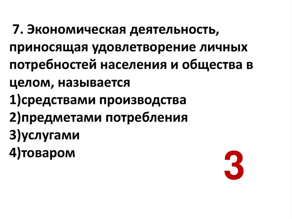 7. Экономическая деятельность,приносящая удовлетворение личных