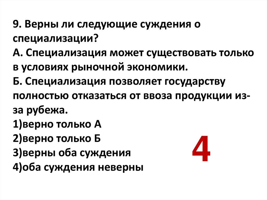 9. Верны ли следующие суждения оспециализации?