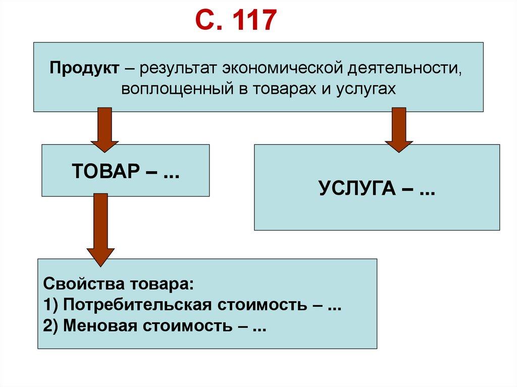 С. 117Продукт – результат экономической деятельности,