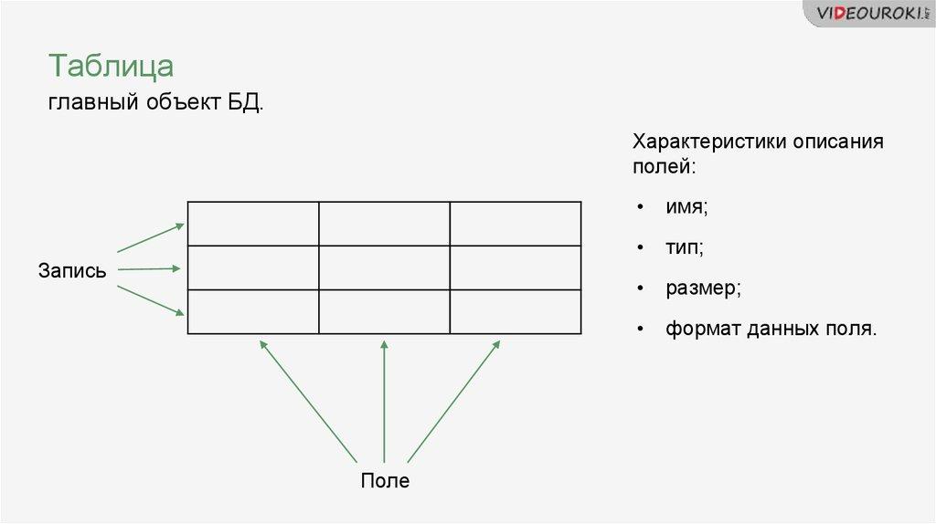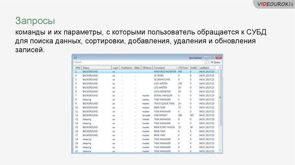 Запросыкоманды и их параметры, с которыми пользователь обращается к СУБД