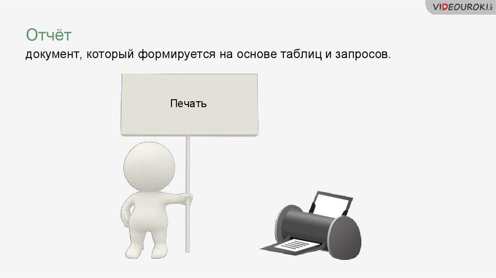 Отчётдокумент, который формируется на основе таблиц и запросов.