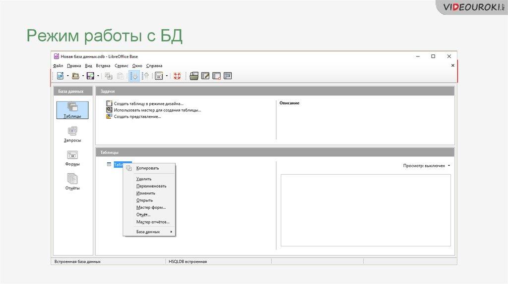 Знакомство с СУБД LibreOffice BaseЗапросы