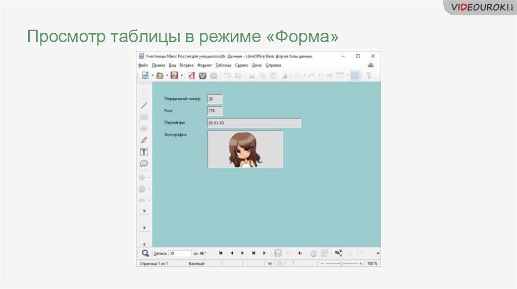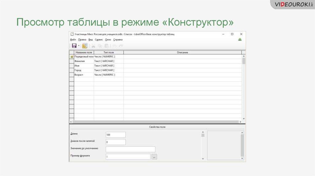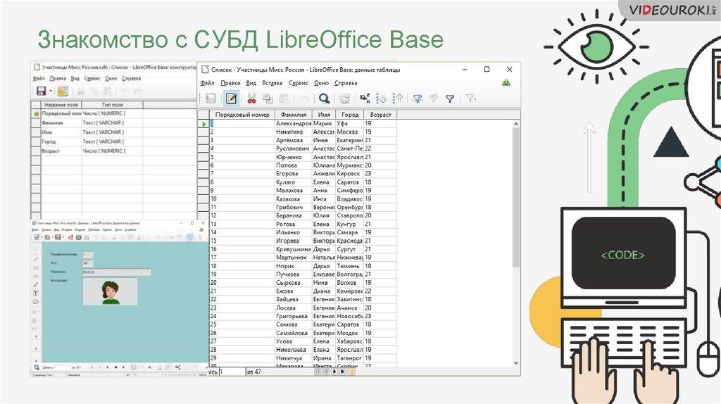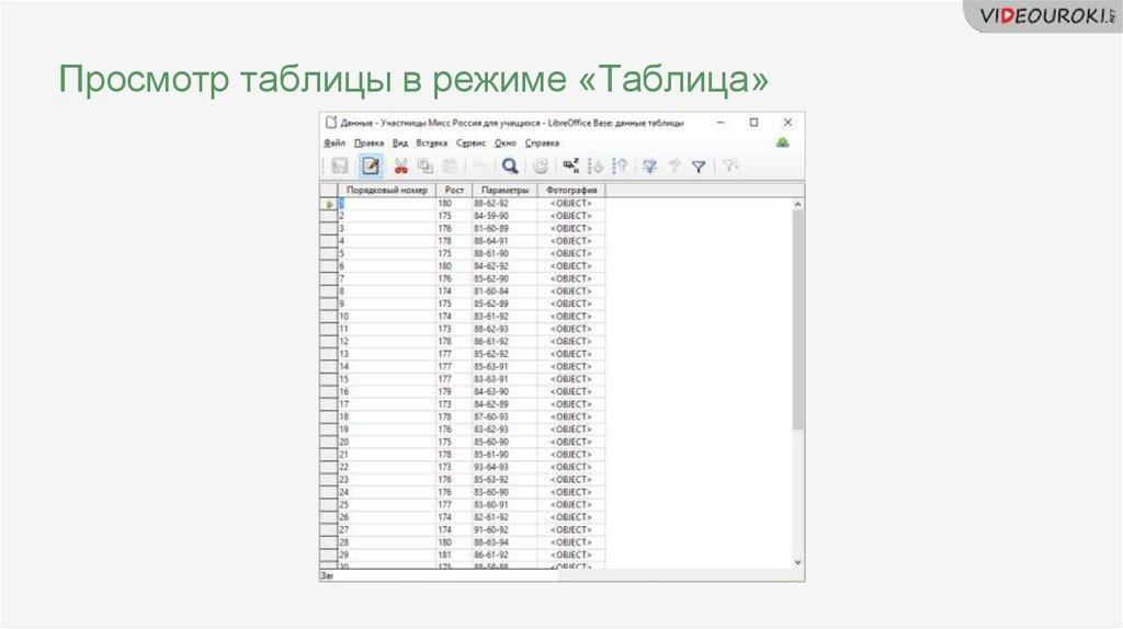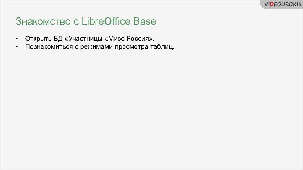 Знакомство с LibreOffice BaseОткрыть БД «Участницы «Мисс Россия».