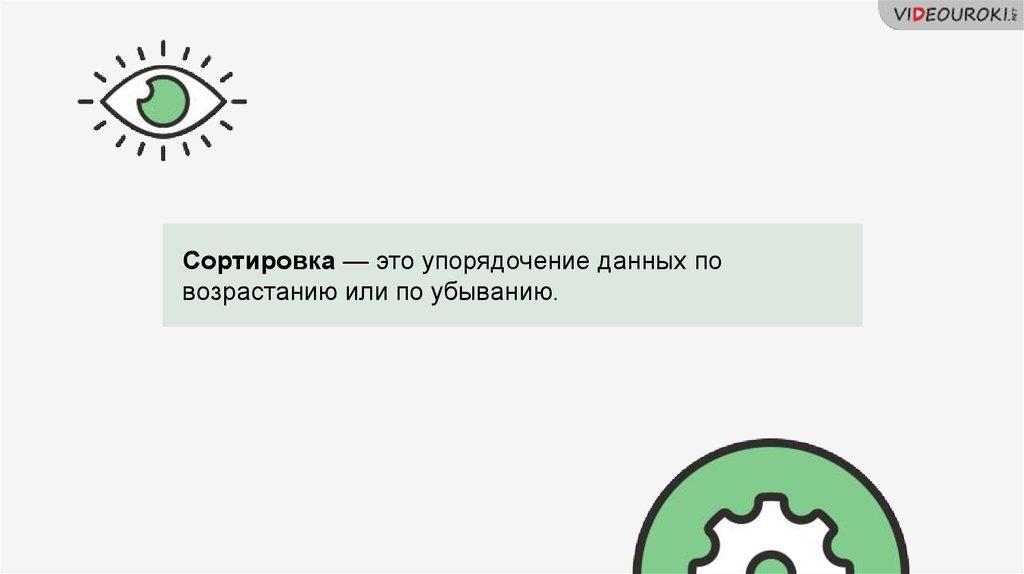 Сортировка — это упорядочение данных повозрастанию или по убыванию.
