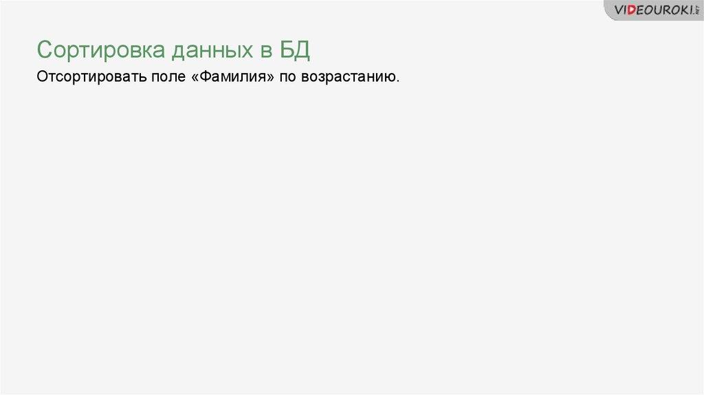 Сортировка данных в БДОтсортировать поле «Фамилия» по возрастанию.