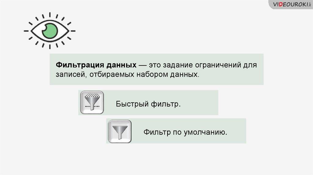 Фильтрация данных — это задание ограничений длязаписей, отбираемых набором данных.