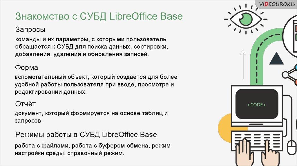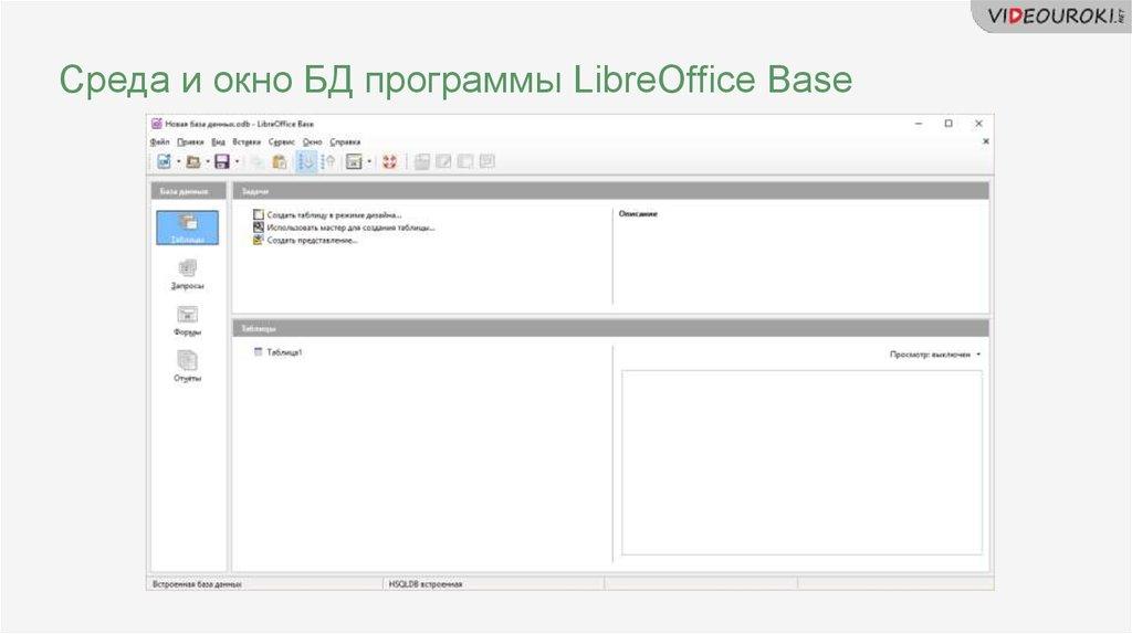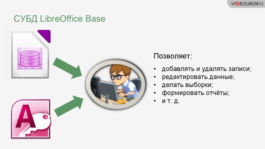 СУБД LibreOffice BaseLibreOffice — это свободный офисный пакет с открытым исходным кодом, доступный для Windows, Linux и Mac.