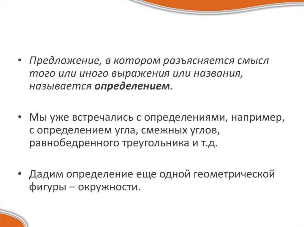 • Предложение, в котором разъясняется смыслтого или иного выражения или названия,