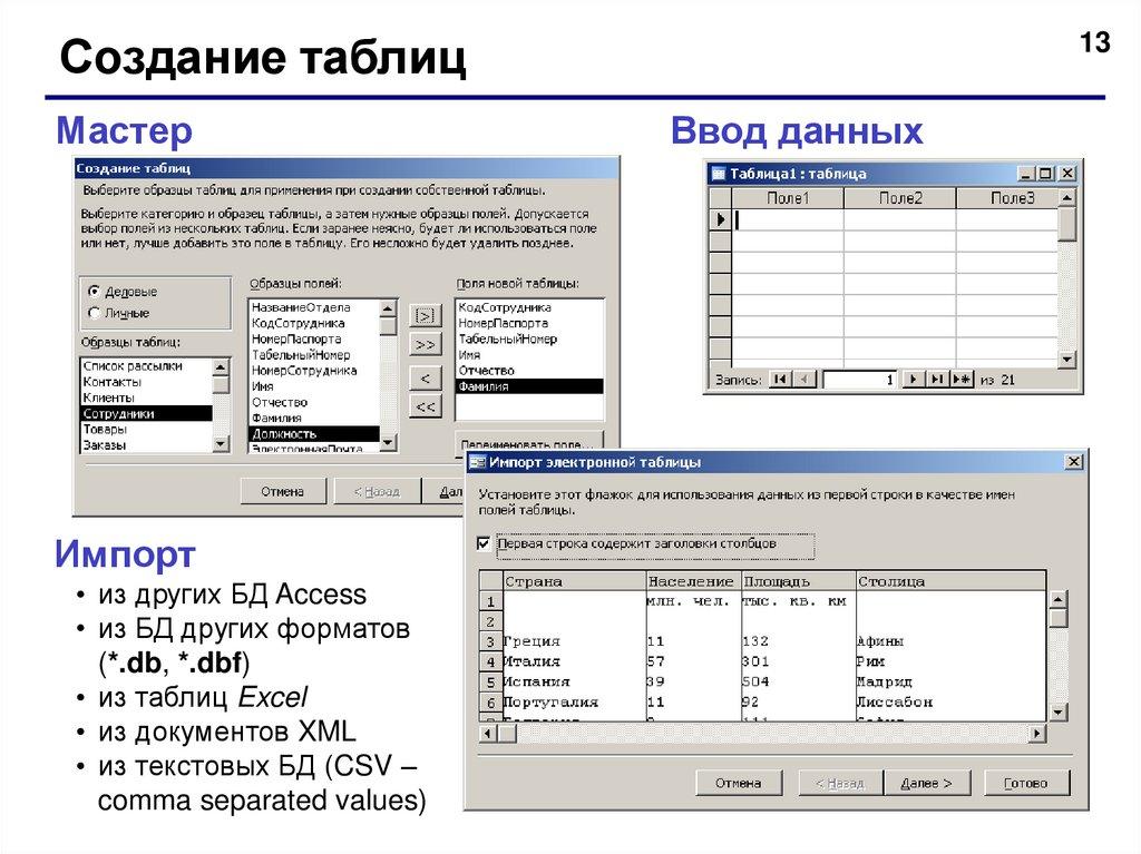 Базы данных. Access 2003. Тема 4. Базы данных Access. Работа с таблицами