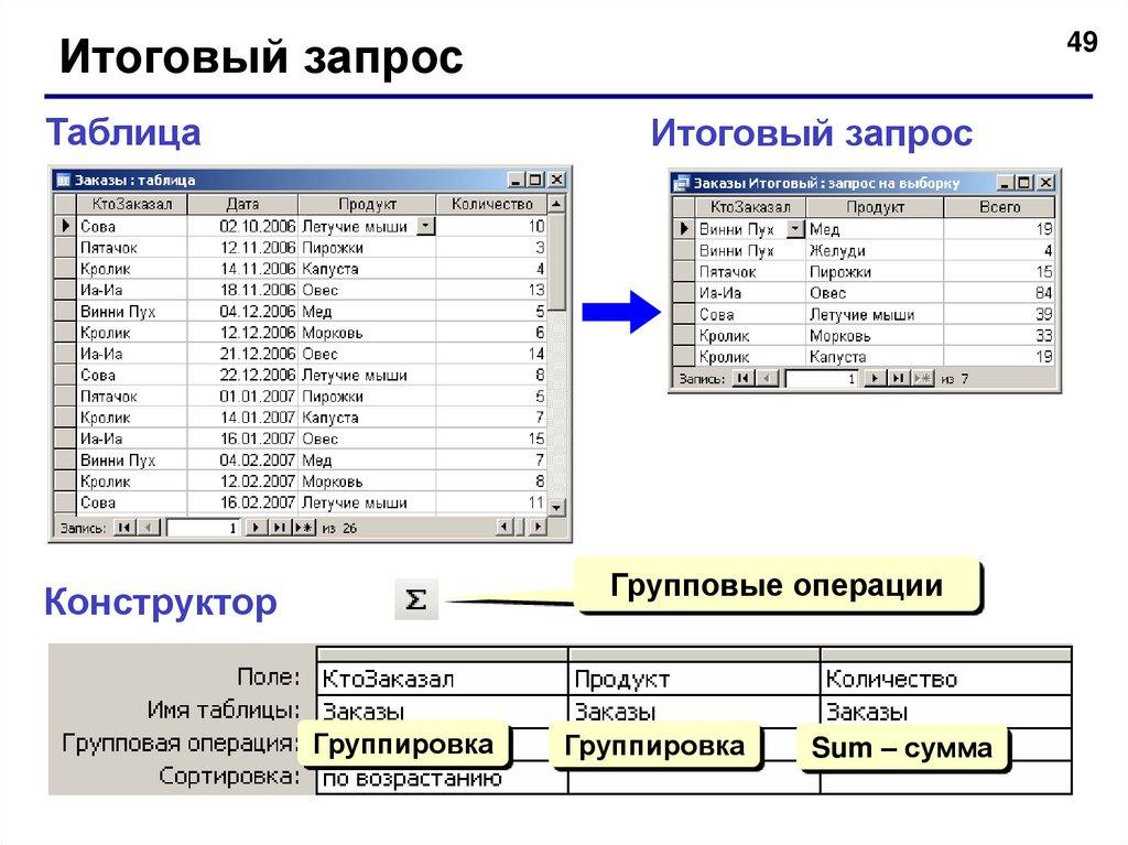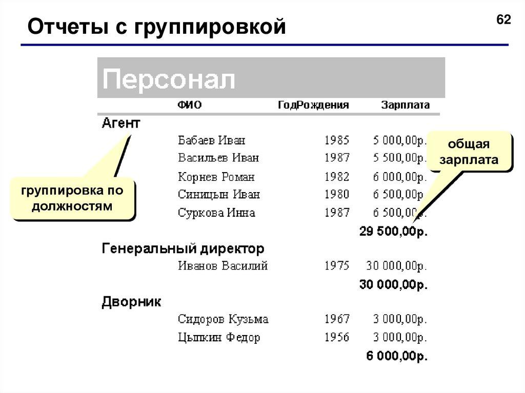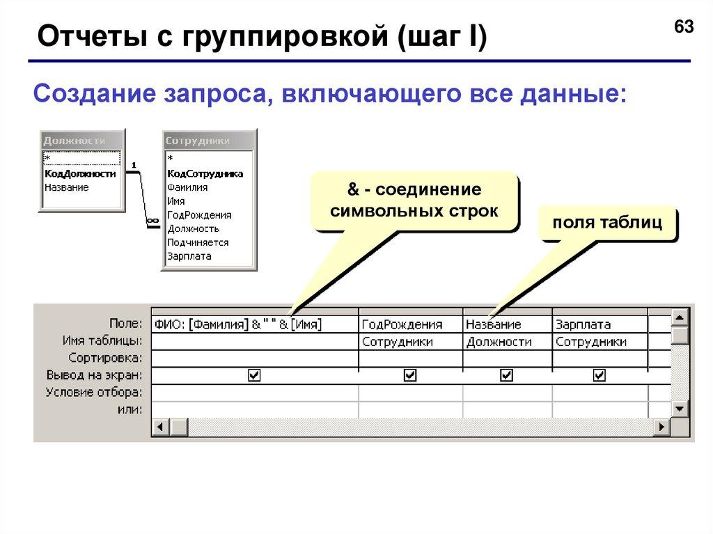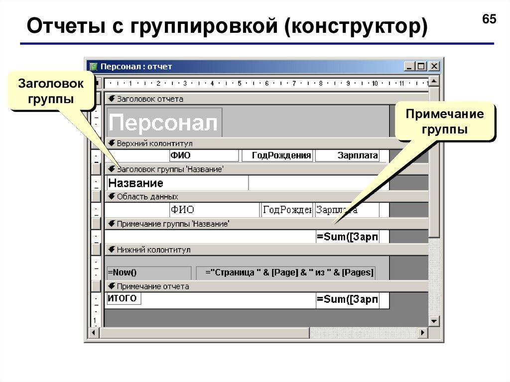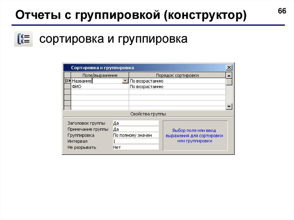 Отчеты с группировкой (конструктор)сортировка и группировка