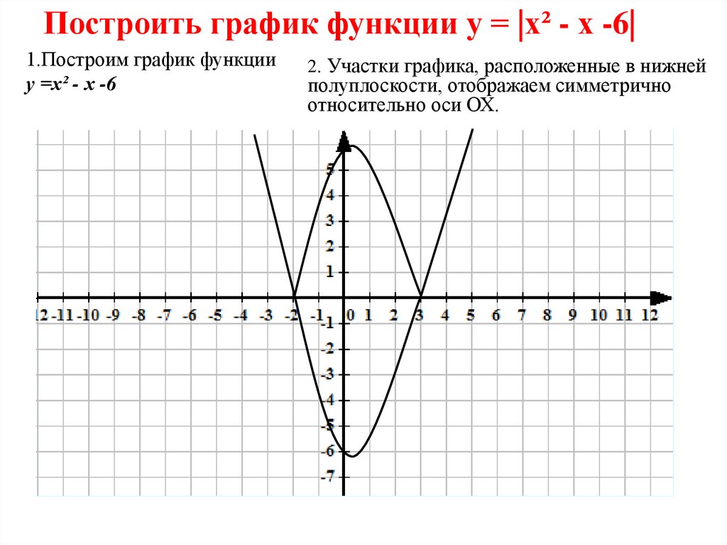 Построить график функции у = |х² - х -6|1.Построим график функции