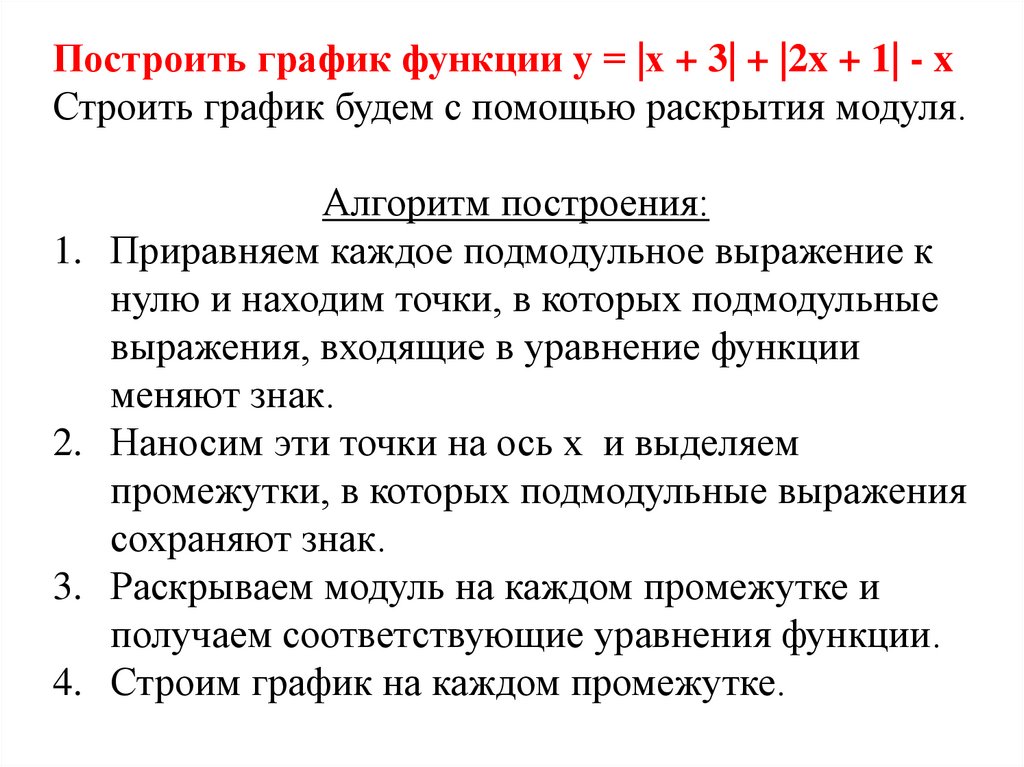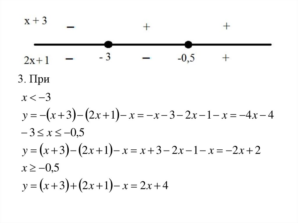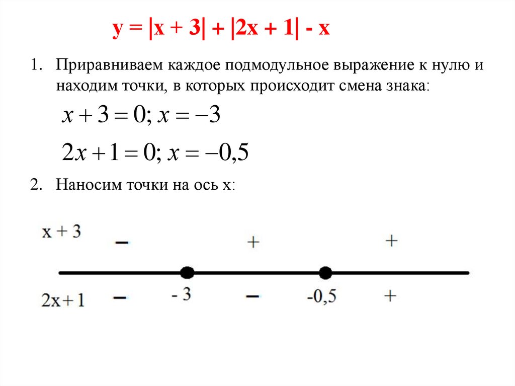 у = |х + 3| + |2x + 1| - x1. Приравниваем каждое подмодульное выражение к нулю и