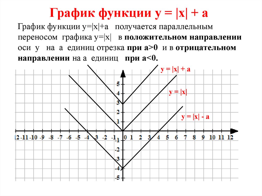 График функции у = |х| + аГрафик функции у=|х|+а получается параллельным