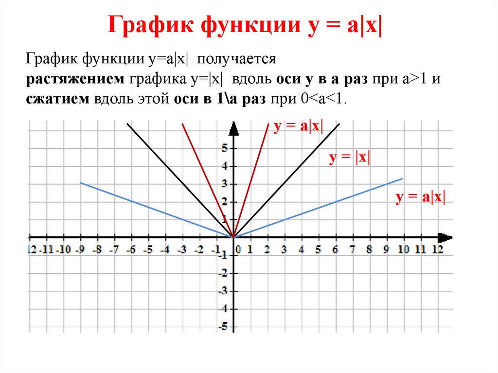 растяжением графика у=|х| вдоль оси у в а раз при а>1 и