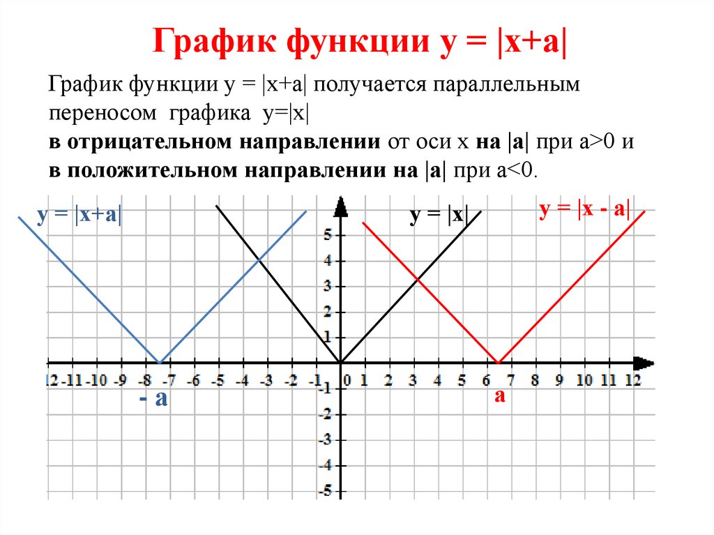 График функции у = |х+а|График функции у = |x+a| получается параллельным