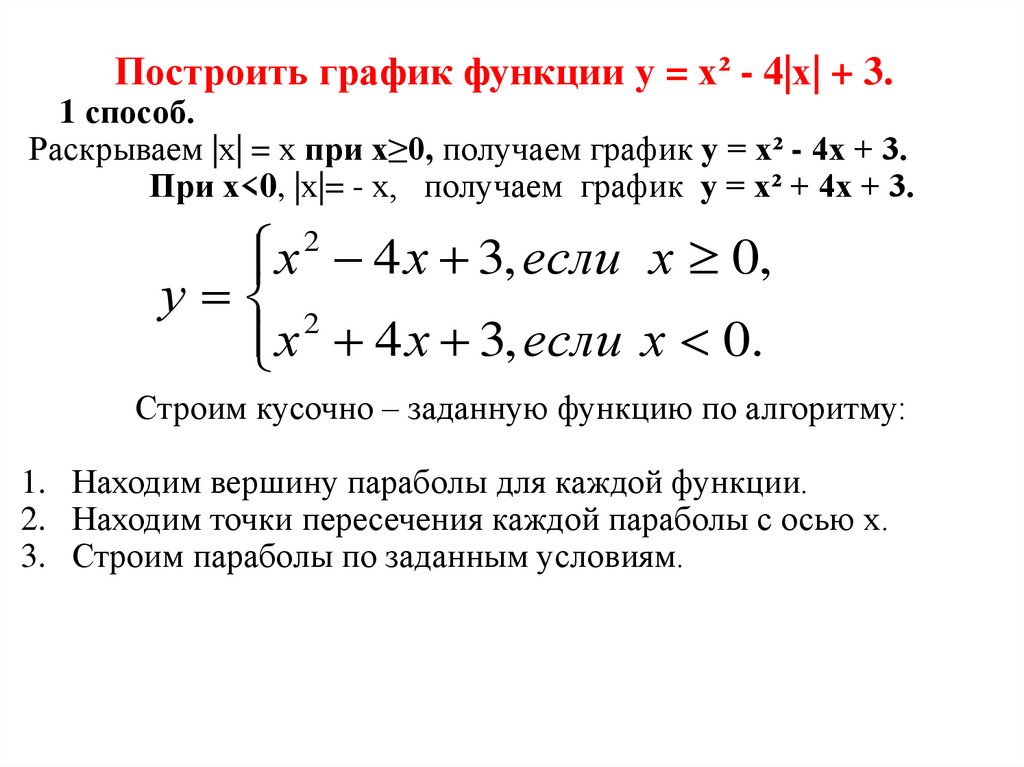 Построить график функции у = х² - 4|х| + 3.1 способ.
