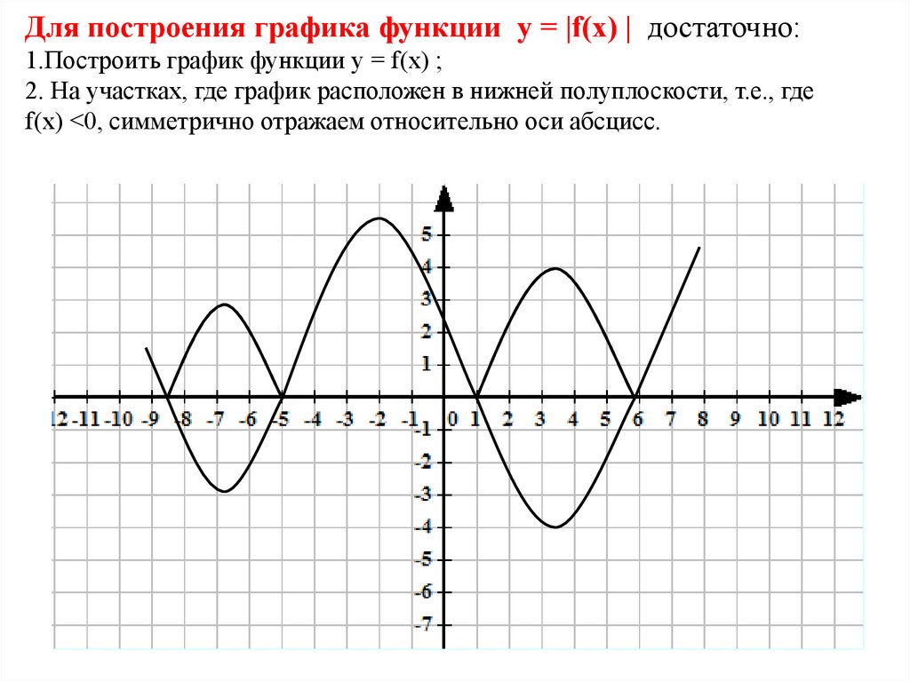 Для построения графика функции у = |f(х) | достаточно:1.Построить график функции у = f(х) ;