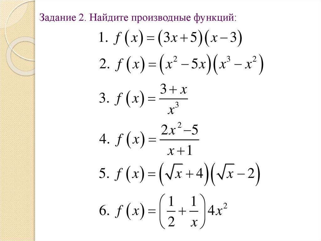 Задание 2. Найдите производные функций:1. f x 3 x 5 x 3