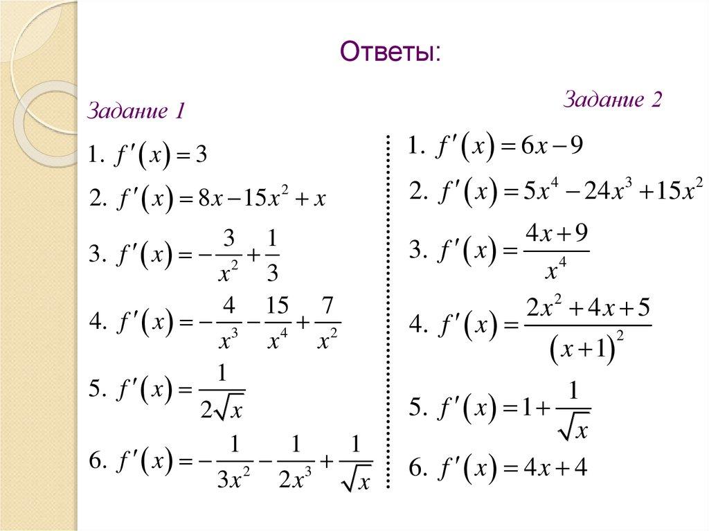 вычисления производных элементарных