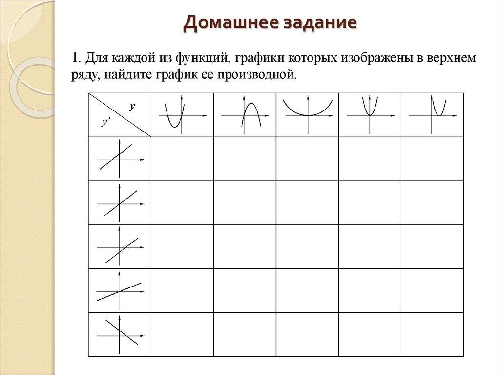 Домашнее задание1. Для каждой из функций, графики которых изображены в верхнем