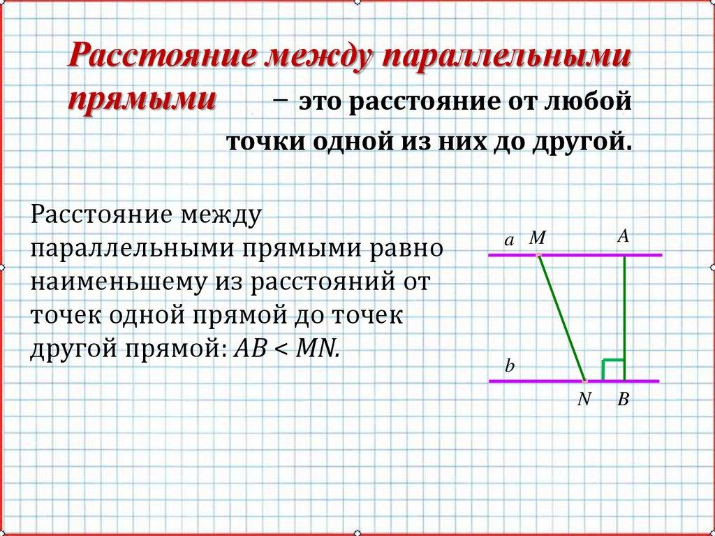 Расстоянием от точки до прямой. Расстояние между двумя параллельными прямыми