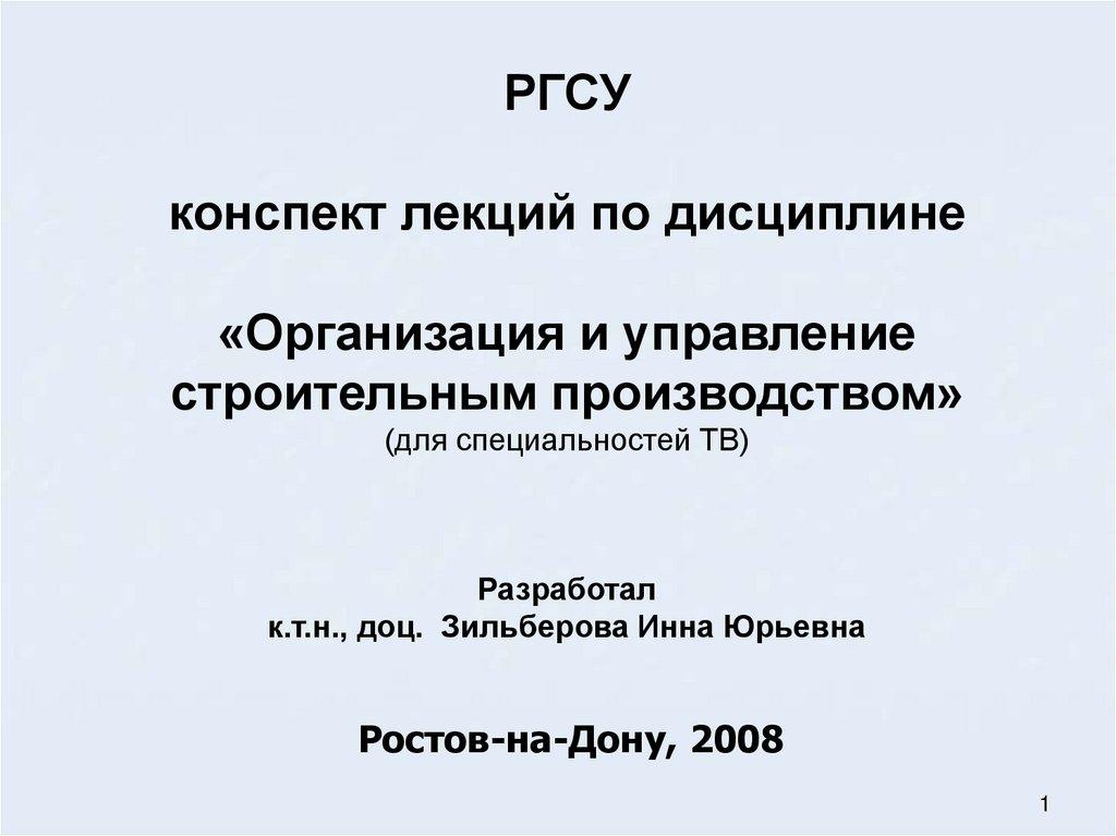 РГСУконспект лекций по дисциплине