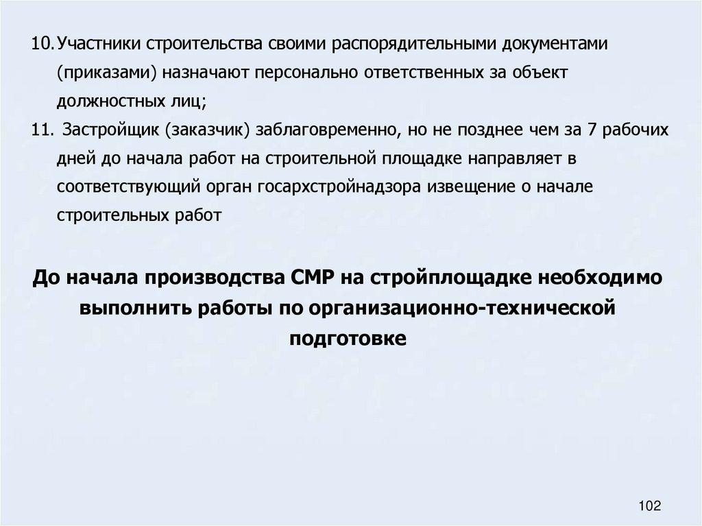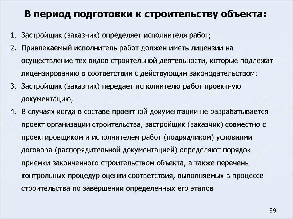 28. Основные мероприятия участников строительного производства в период