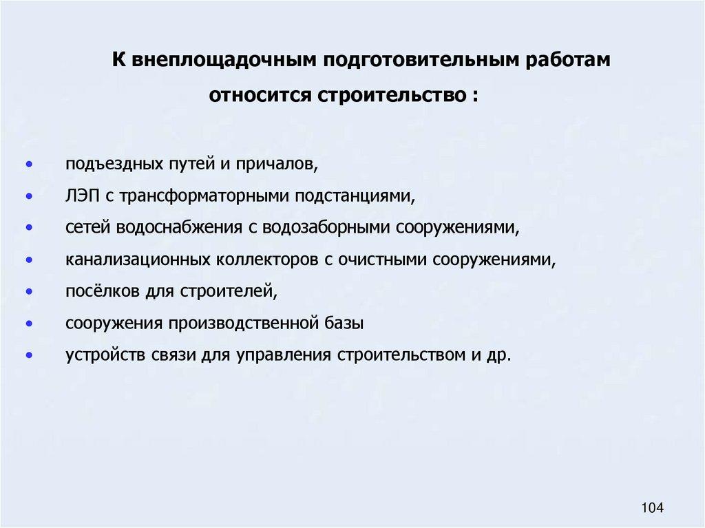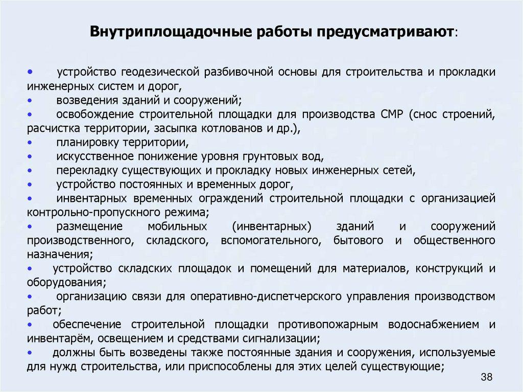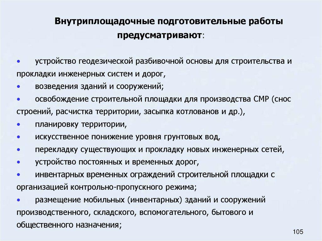 30. Внутри- и внеплощадочные работы подготовительного периода строительства