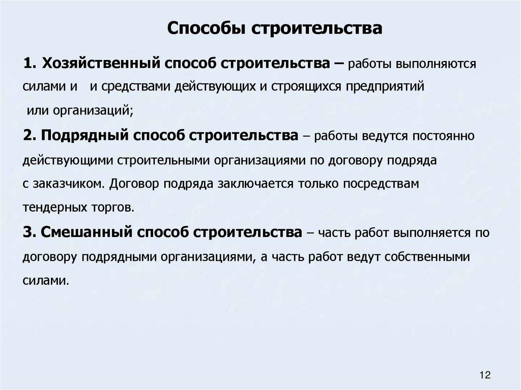 Способы строительства