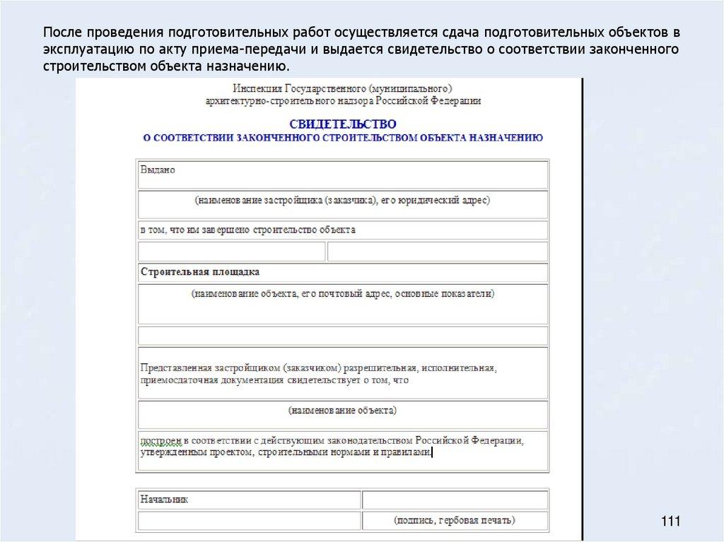 зданий и сооружений в эксплуатацию