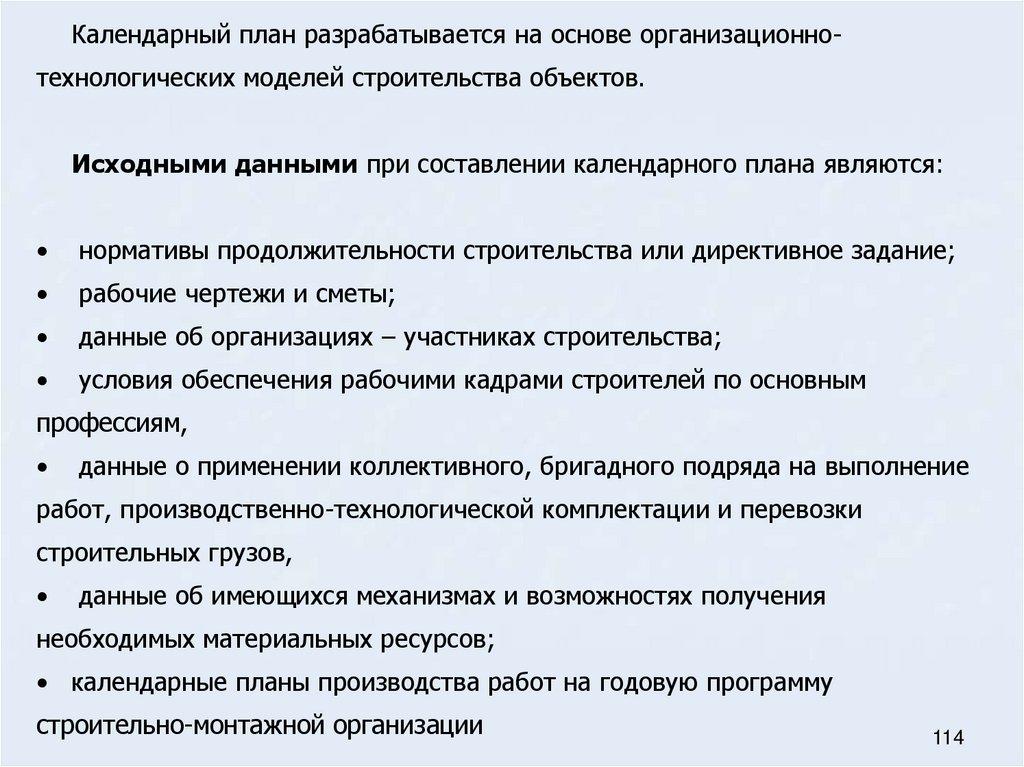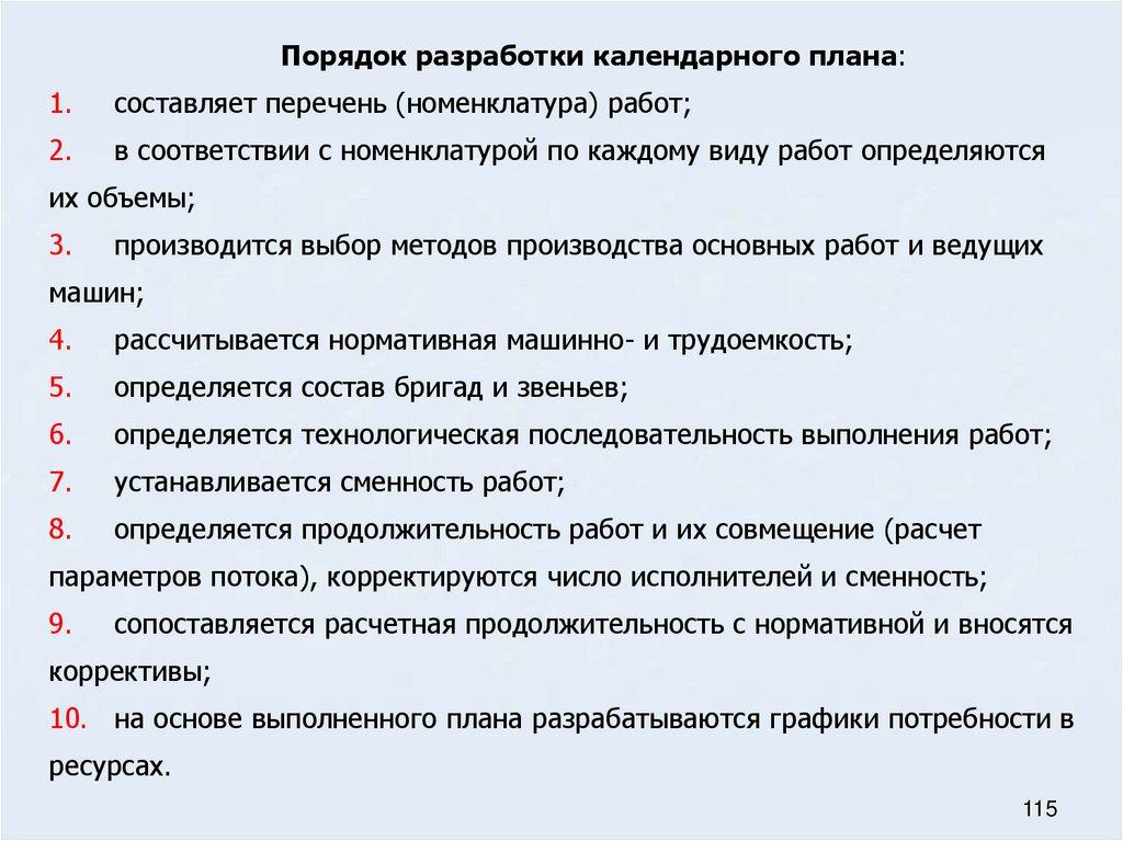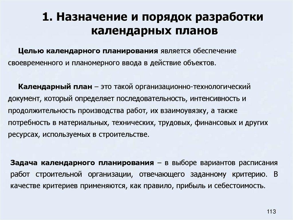 Назначение и порядок разработки календарных
