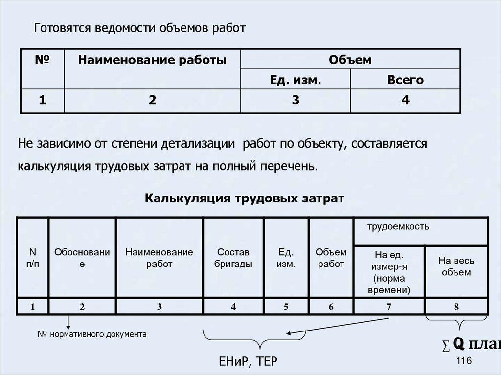 Состав и технико-экономические показатели проекта производства работ