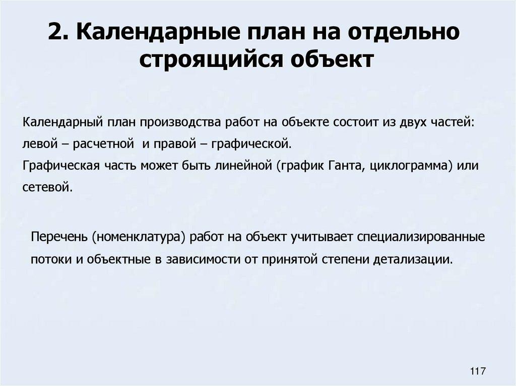 Календарные план на отдельно строящийся объект