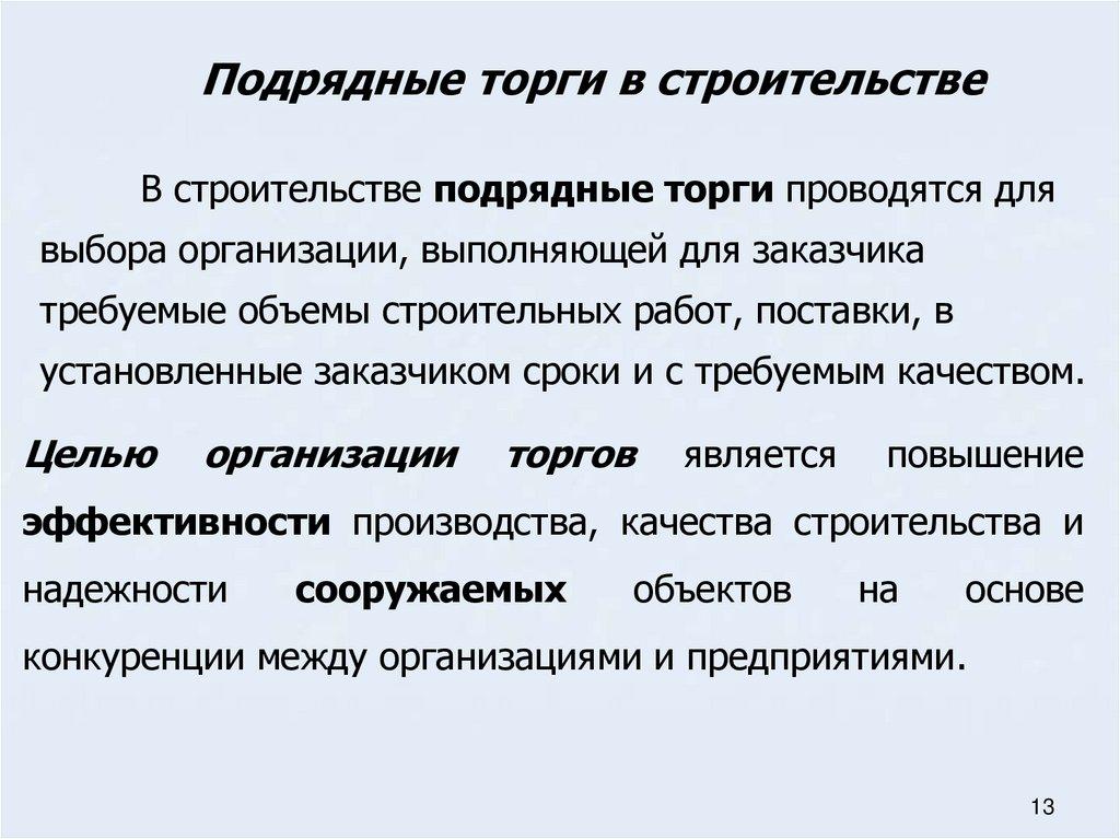 Подрядные торги в строительстве
