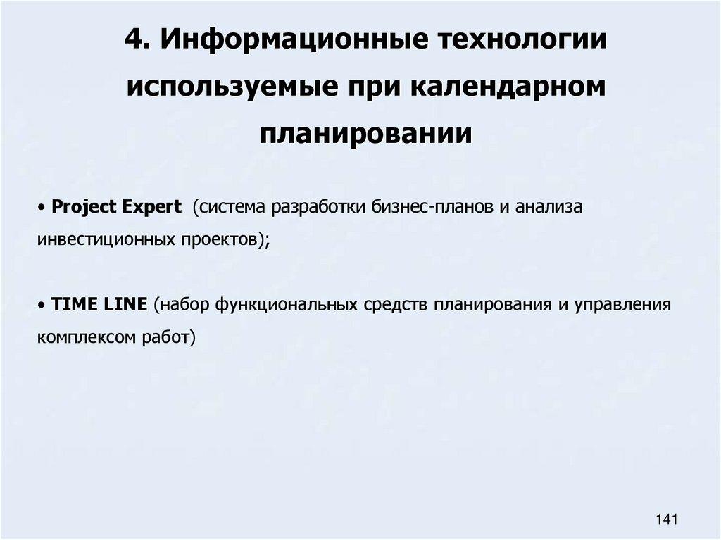 36. Информационные технологии используемые при календарном планировании