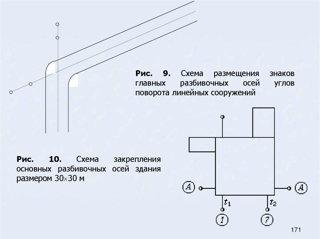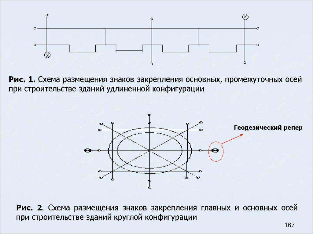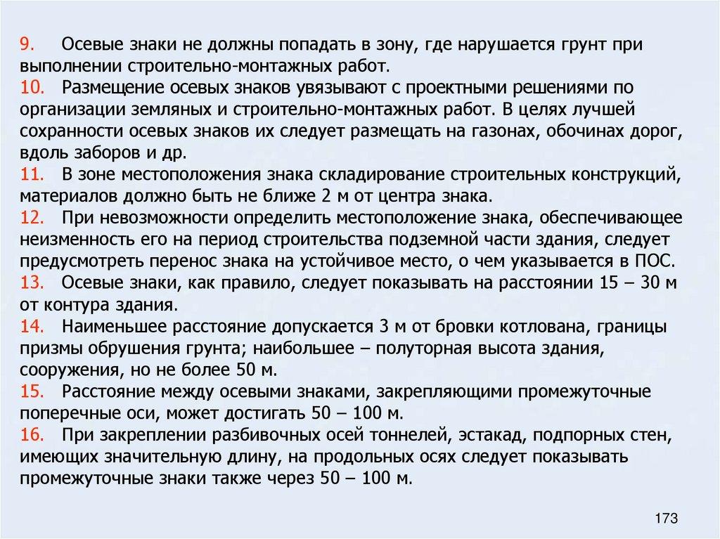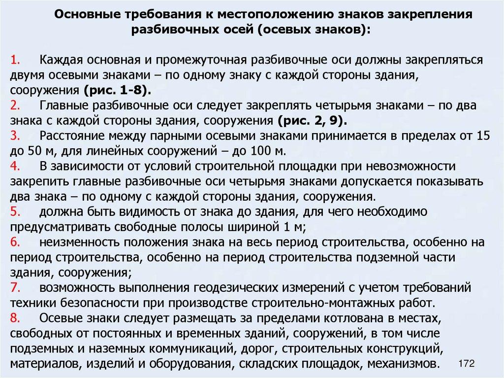 48. Основные требования к местоположению знаков разбивочных осей (осевых знаков)