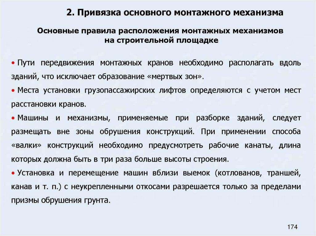 49. Основные правила расположения монтажных механизмов на строительной