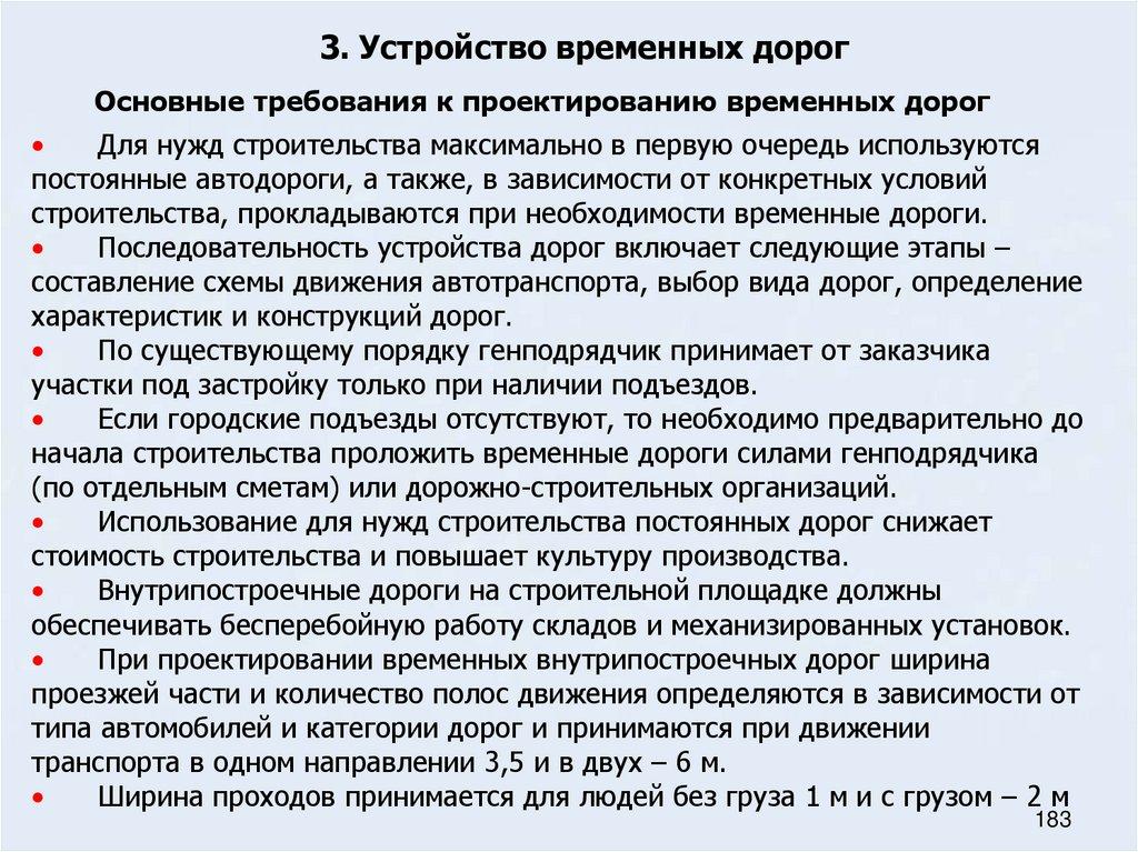 53. Основные требования к проектированию временных дорог на строительном