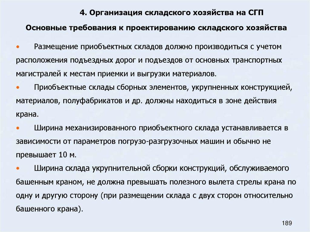 54. Основные требования к проектированию складского хозяйства на строительном