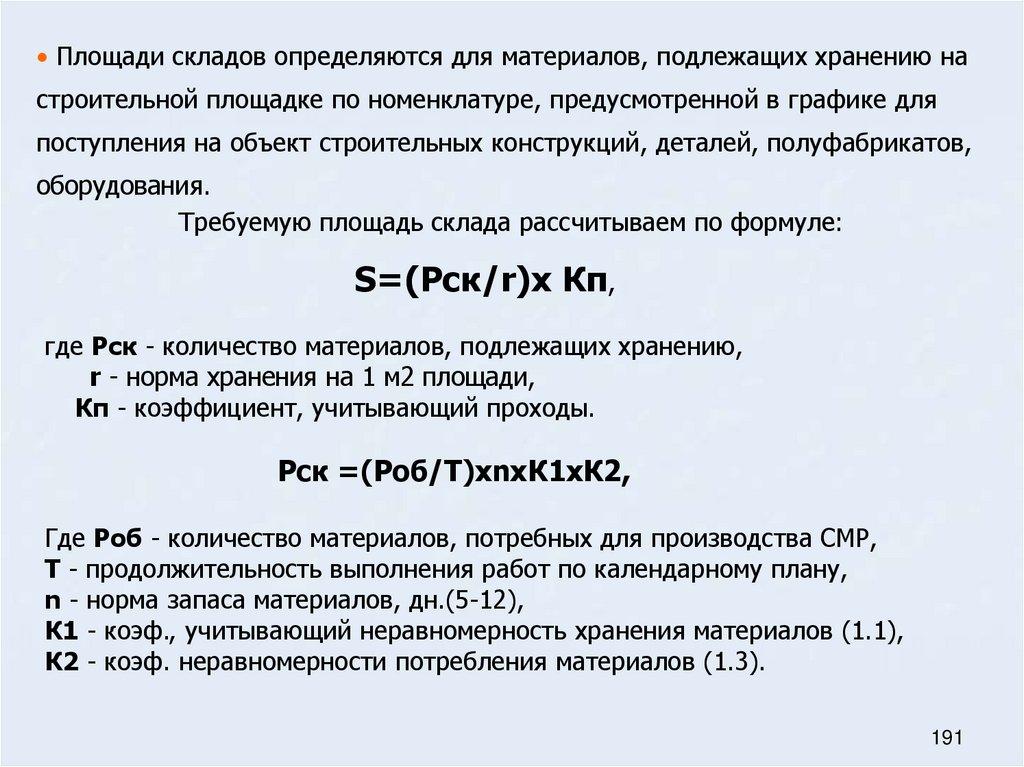 38. Расчет площади складов на строительном генеральном плане