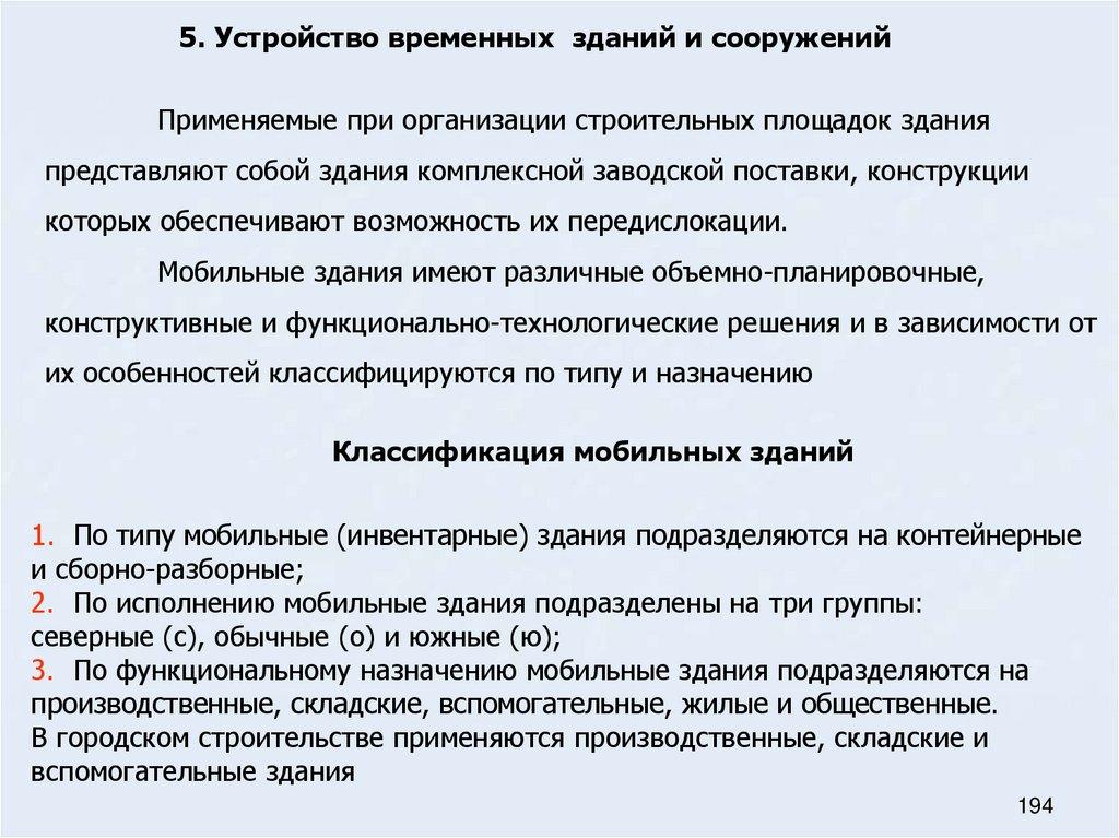 40. Классификация мобильных зданий на строительном генеральном плане и