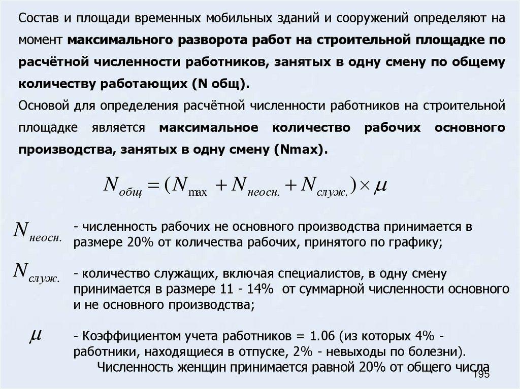 сооружений и расчет общей численности работающих на строительной площадке
