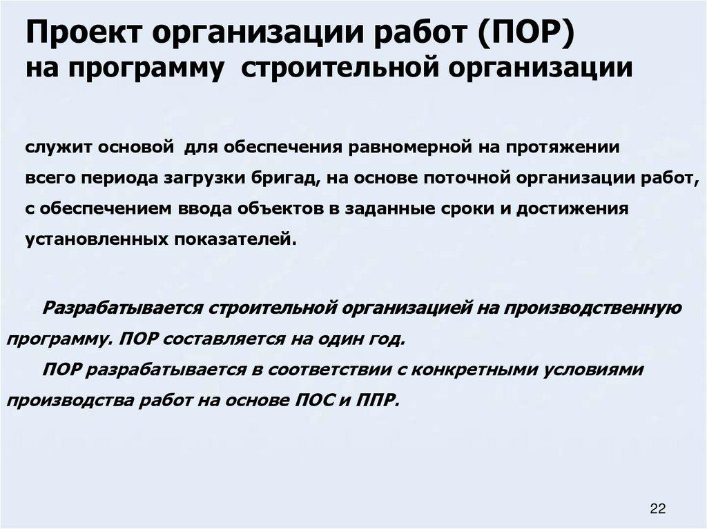 Проект организации работ на программу строительной организации