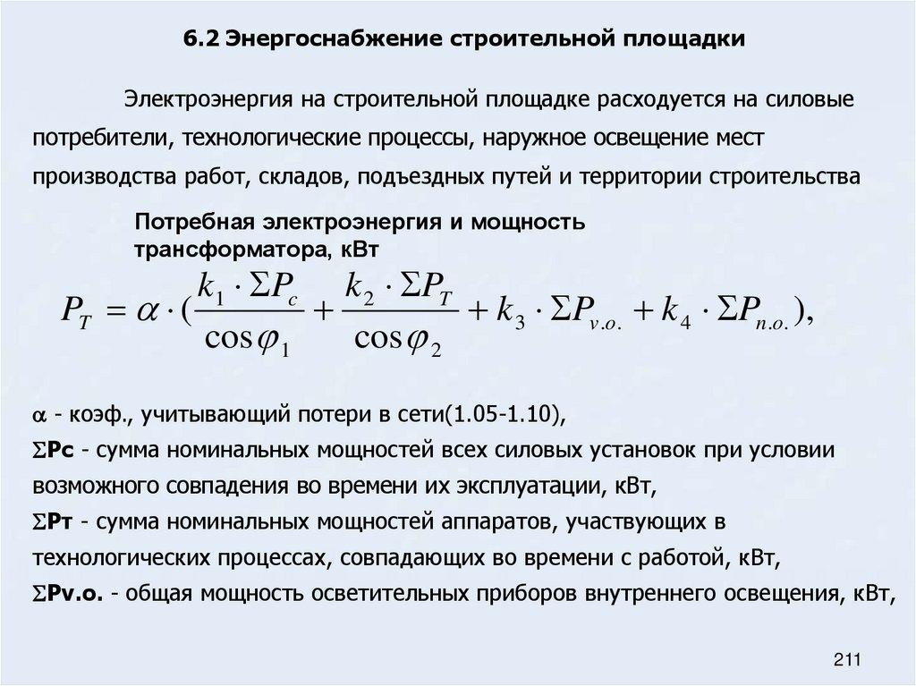 59. Расчет потребной электроэнергии и мощности трансформаторной подстанции на