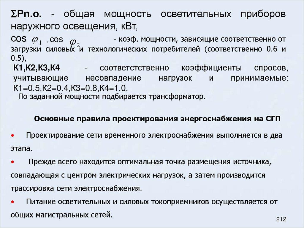 60. Основные правила проектирования энергоснабжения на строительном генеральном